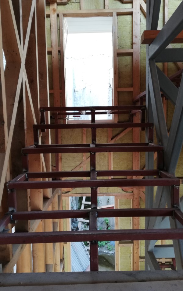 Eski eser asansör etrafını 40x40 profilden 3 kat merdiven yapılmıştır. Merdiven etrafı osb ile kapatıldıktan sonra ahşap ile örtülecektir.