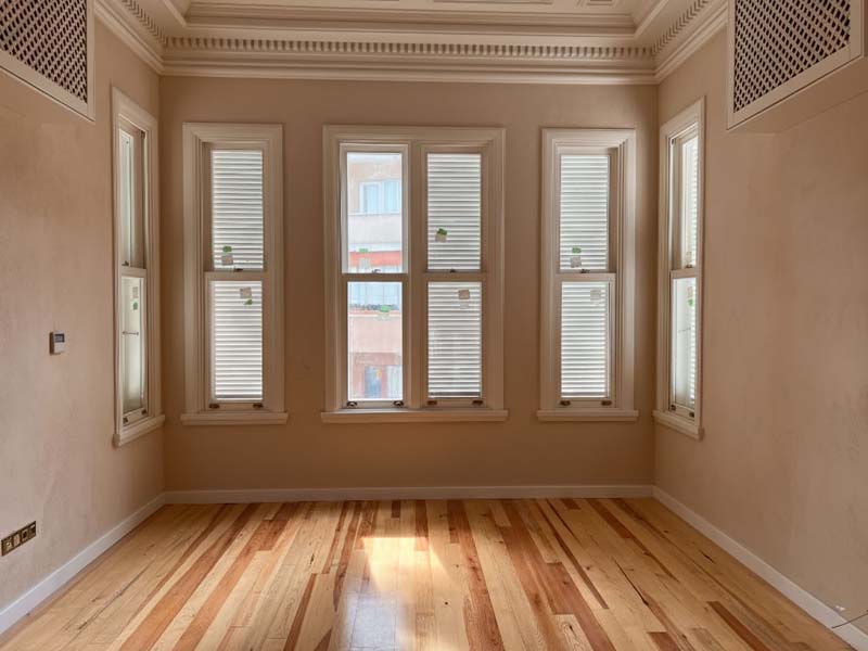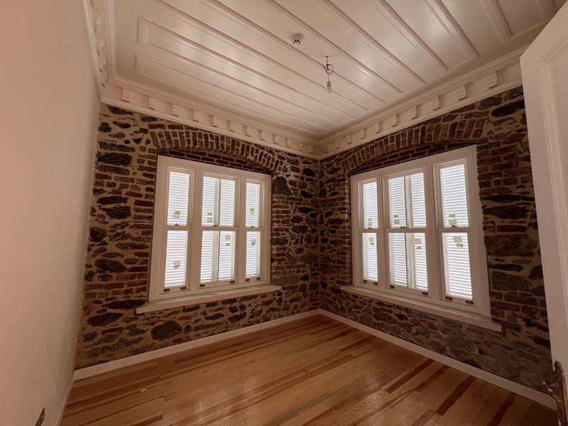 - Tavanlardaki özgün süsleme ve çıta detayları korunarak sadece eksik kısımlar aslına uygun biçimde tamamlandı.